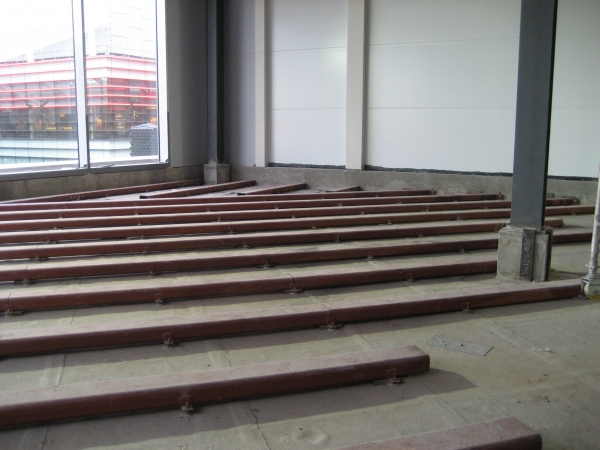 To make up the floor levels, void former was placed between the steels, and the floating floor was constructed as normal.